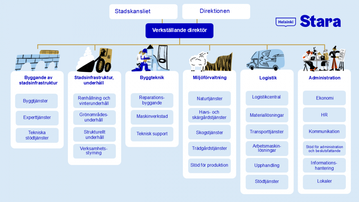 Stara har tagit hand om Helsingfors som självständig aktör sedan 2009, men våra rötter går tillbaka till byggnadskontoret som grundades redan 1878. Stara blev ett affärsverk år 2017. Staras verksamhet leds av en direktion som utses av stadsstyrelsen. Ilpo Laitinen är verkställande direktör.